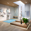 Благодаря своей передовой технологии Viega Prevista и продуктам Visign, Viega учитывает всевозможные требования к многогранной ванной комнате. Например, индивидуально регулируемые элементы туалетов и умывальников, которые могут быть скорректированы на 8 см или 20 см в высоту соответственно простым нажатием на кнопку. Механизм покрыт высококачественной стеклянной плиткой: идеальное сочетание комфорта и дизайна.